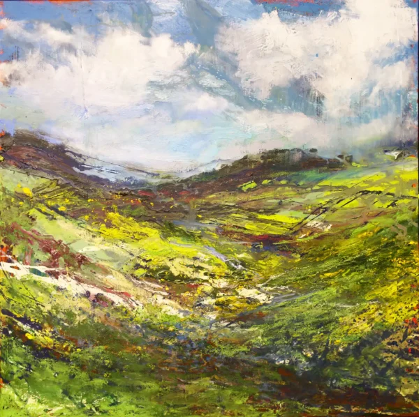 De dikke verfaanbreng en het zichtbare paletmes- of penseelgebruik zorgen voor een rijke textuur; het werk heeft een bijna tastbare, dynamische energie. Het kleurgebruik is intens en warm, wat typisch is voor Van de Wege’s stijl, waarin hij het Nederlandse landschap niet alleen weergeeft, maar ook voelbaar maakt.